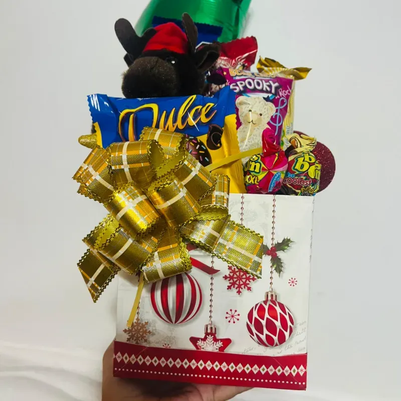 Contiene peluche, confituras y adornos navideños Incluye animación