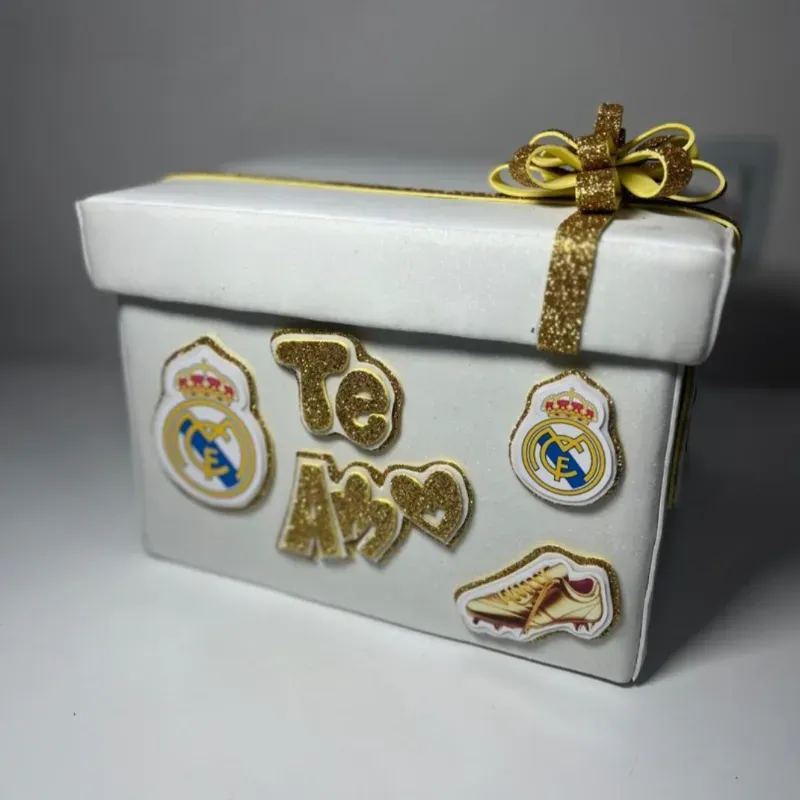 Caja de regalo personalizada con la temática del Real Madrid