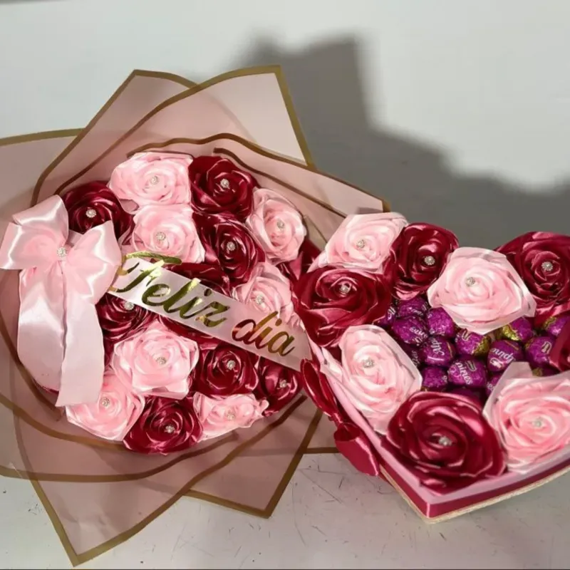 Juego de ramo buchón y 💗 con bombones en rosa