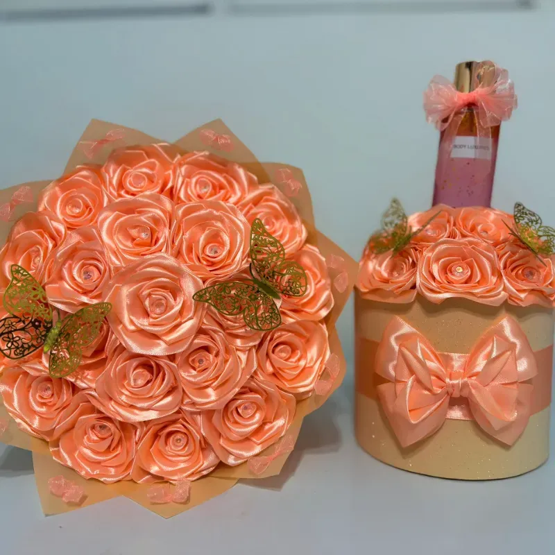 Juego de ramo y estuche en naranja
