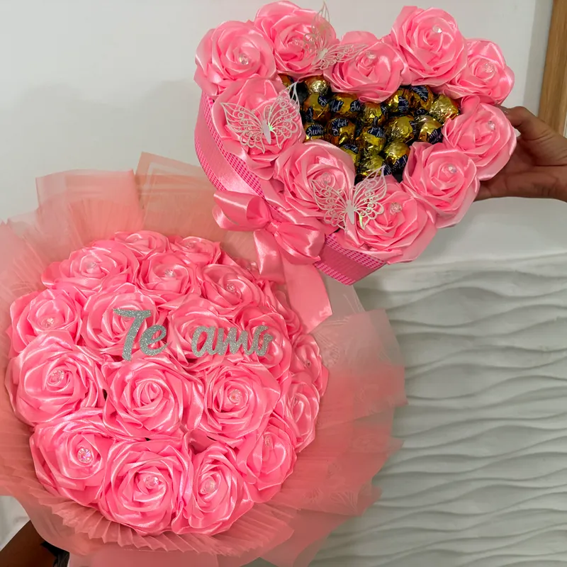 Juego de ramo buchón rosado con bombones 🍫 un color tierno rosita