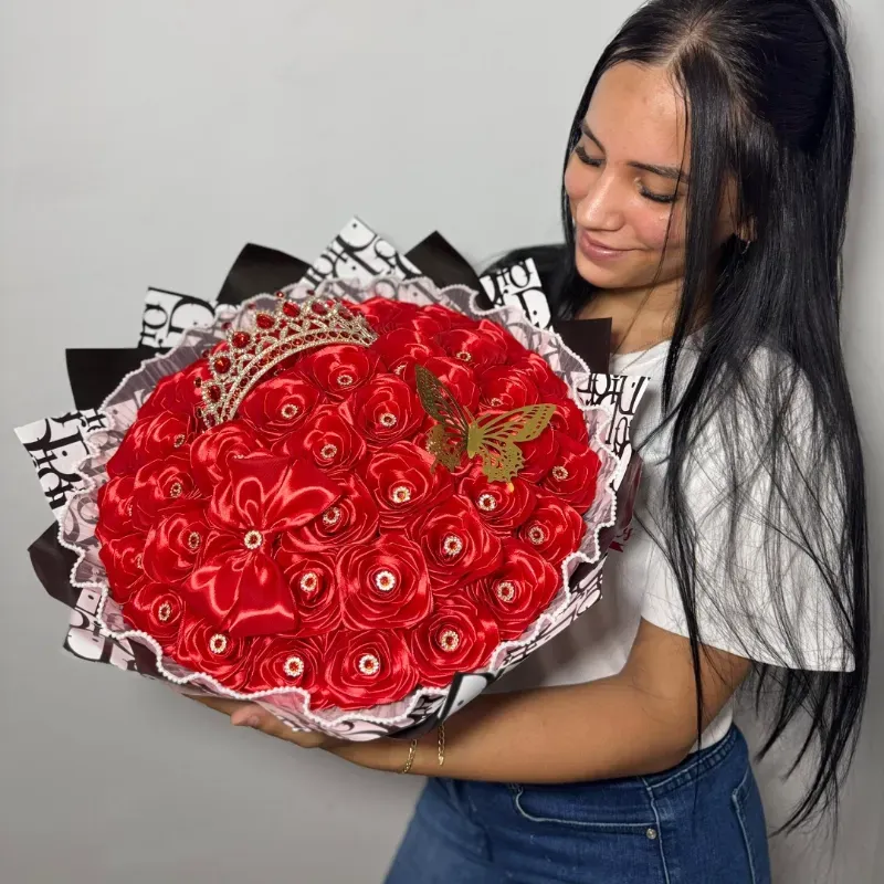 Ramo buchón artificial rojo con tiara
