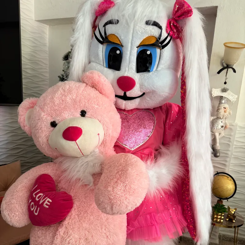 El regalo perfecto para que siempre tu persona favorita te recuerde un inmenso peluche rosado con la temática de I Love You incluyendo la animación de nuestra coneja de lujo premium .