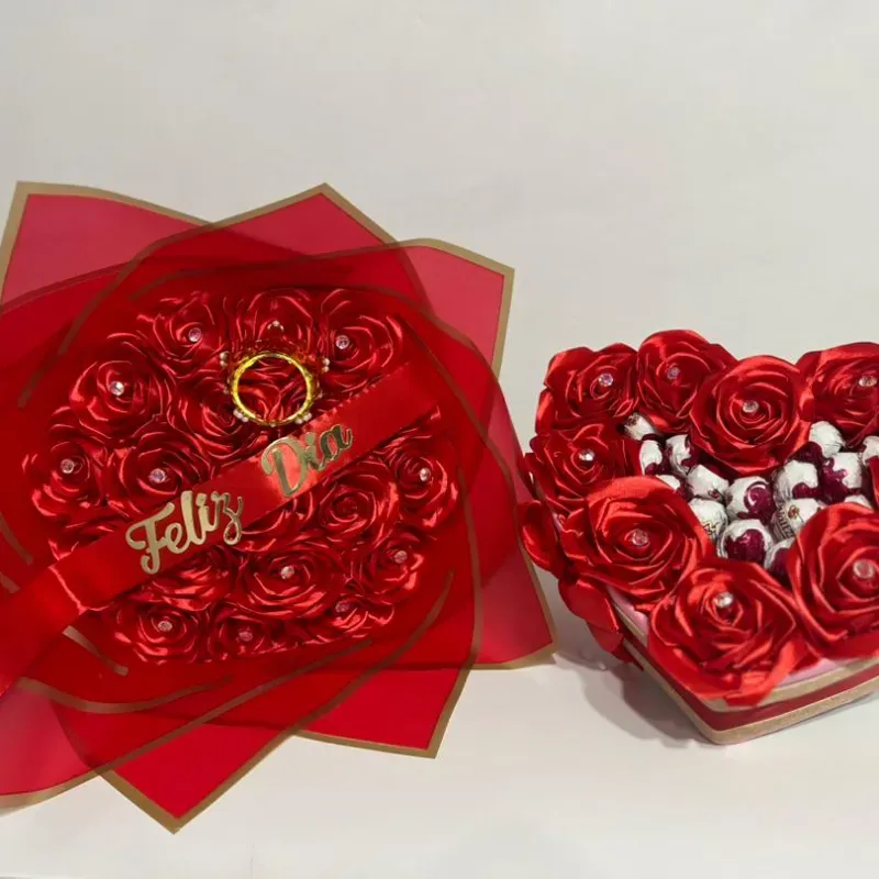 Juego de ramo y ❤️ con bombones "Feliz día"