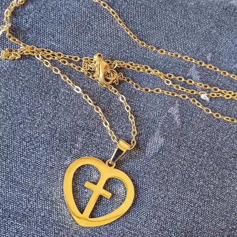 Cadena con diseño de corazón y cruz dorado