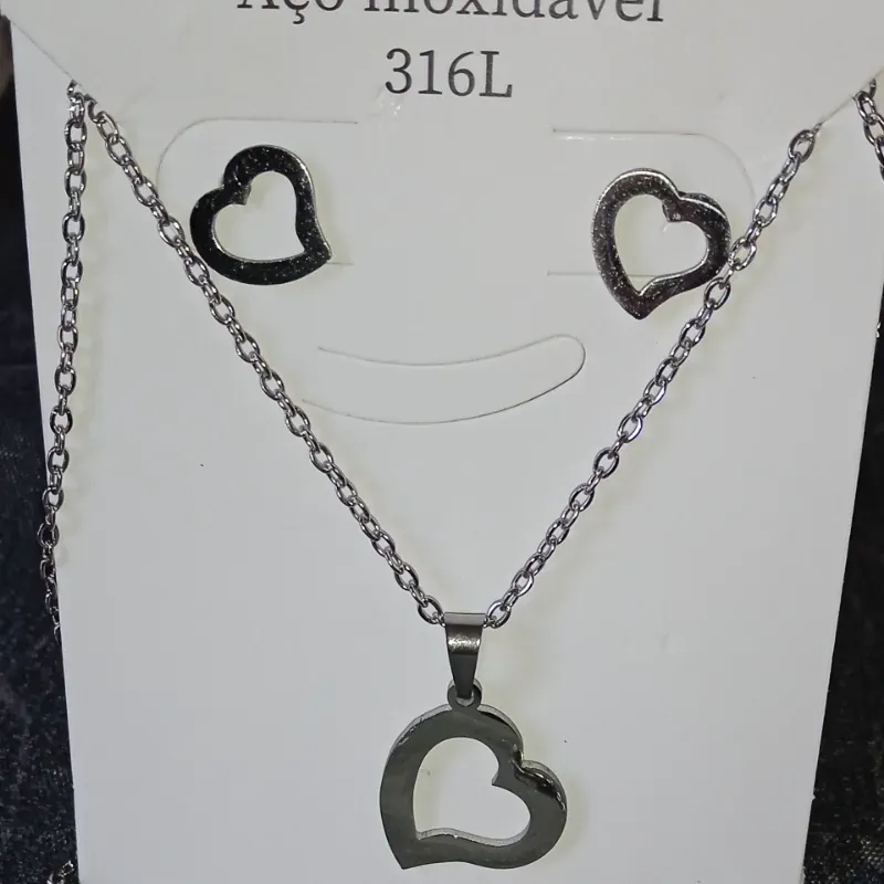 Conjunto con diseño de corazón plateado
