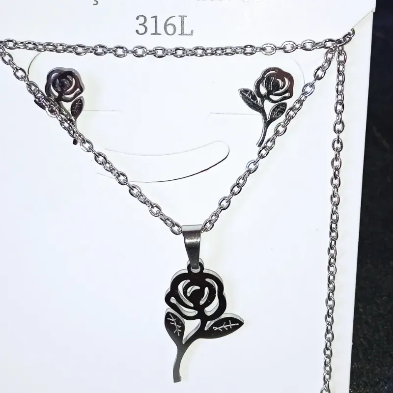 Conjunto con diseño de rosa plateado