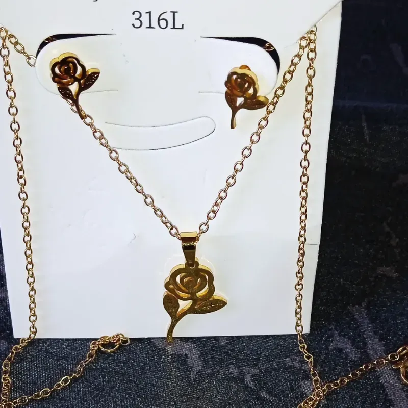 Conjunto con diseño de rosas dorado