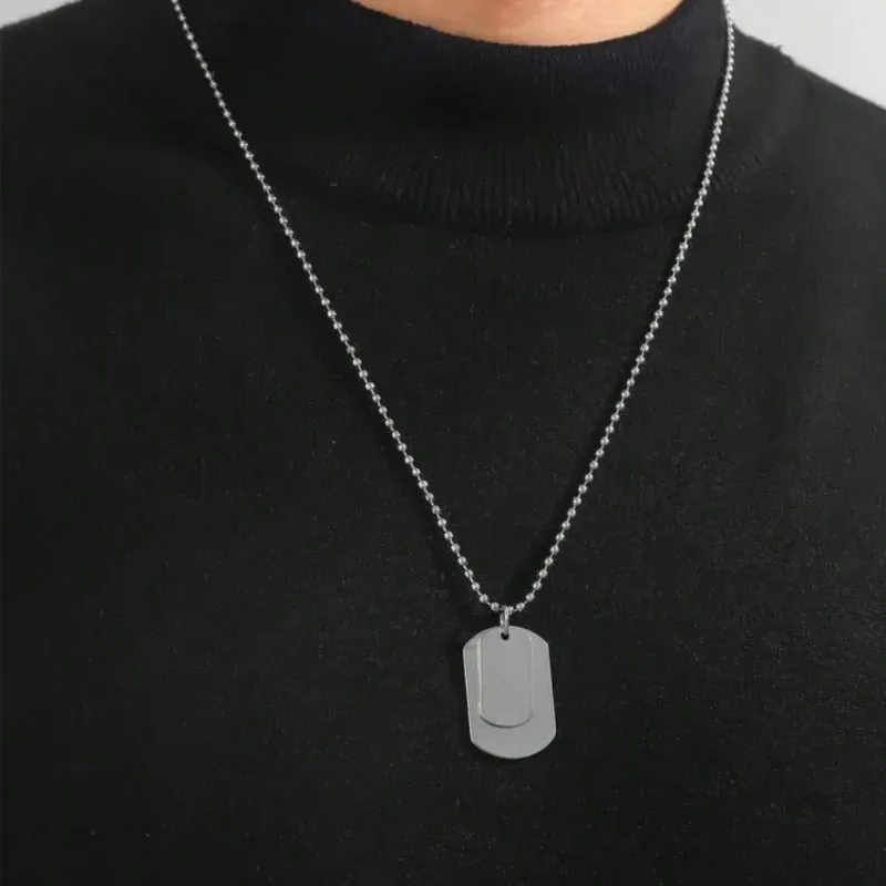 Inspirado en el diseño icónico de las placas de identificación militar, el collar Trooper Steel es un accesorio esencial para el armario masculino. Cuenta con dos placas lisas de acero pulido que cuelgan de una cadena de esferas resistente. Su acabado minimalista lo hace perfecto para grabar fechas, nombres o coordenadas especiales, convirtiéndolo en una pieza con significado personal y estilo atemporal.