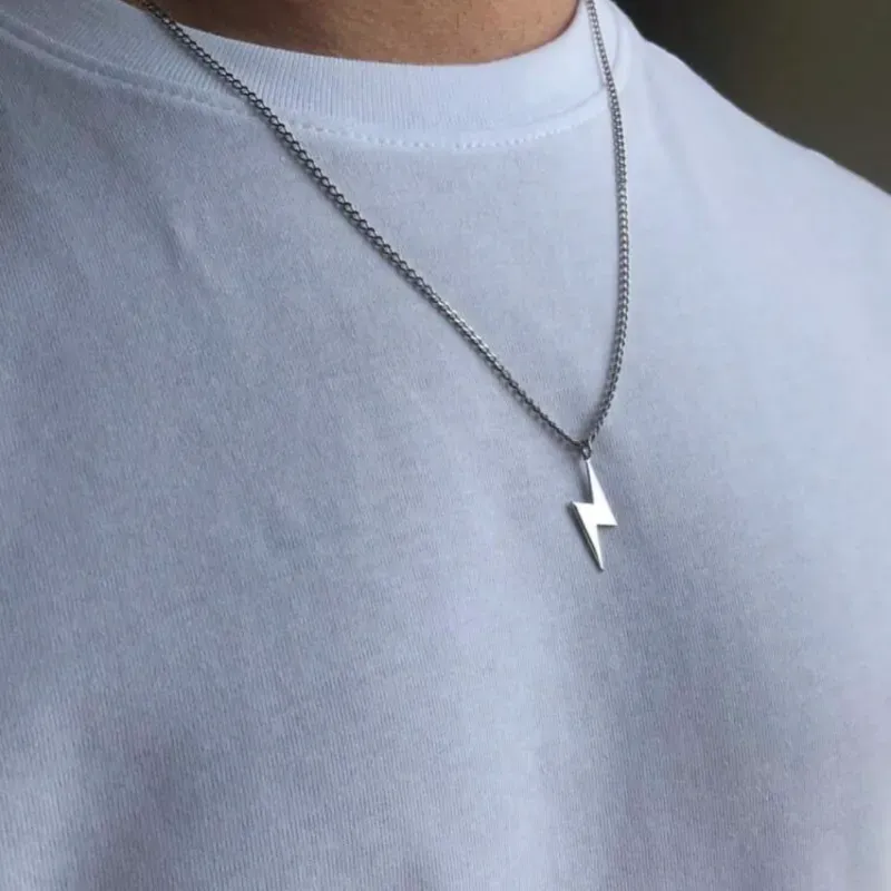 Captura la fuerza de la naturaleza con este collar de diseño audaz y electrizante. El dije de rayo con acabado pulido simboliza la energía, la rapidez y el poder personal. Es la pieza ideal para quienes buscan un accesorio que destaque por su dinamismo y estilo moderno, perfecto para darle un "chispazo" de personalidad a cualquier outfit básico.