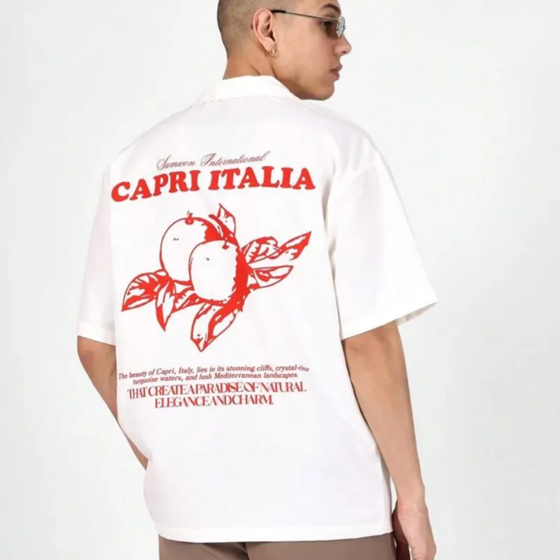 SUMWON Camiseta de manga corta con estampado de verano mediterráneo italiano, de ajuste regular y cómodo, para viajes y declaraciones de estilo casual urbano