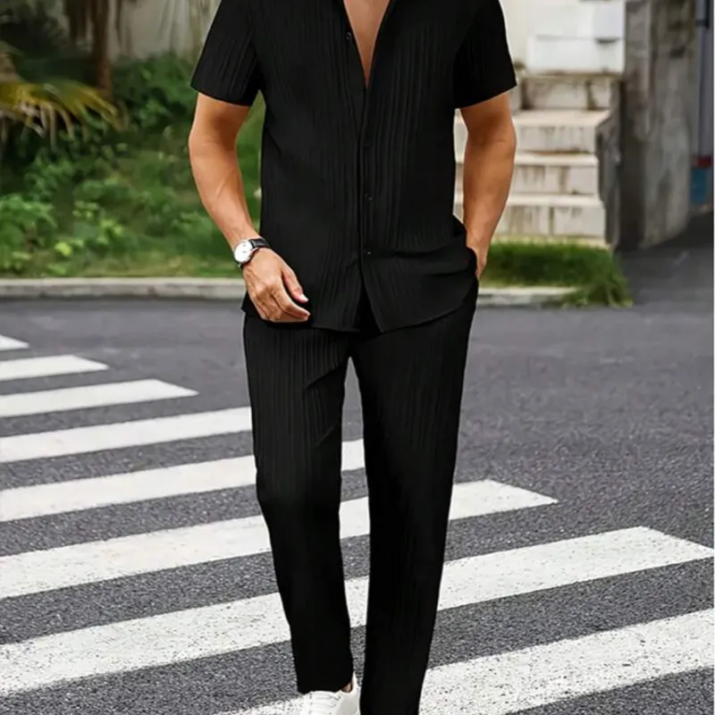 Traje casual de 2 piezas para hombre Traje de pantalón de manga larga de moda europea y americana para hombre Traje de pantalón de manga larga transpirable y agradable para la piel para hombre Ropa casual estampada para hombre Cómodo traje de pantalón y camiseta de manga corta de poliéster