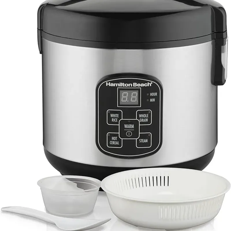 Hamilton Beach – Olla arrocera programable digital y vaporizadora de alimentos, 8 tazas cocidas (4 en crudo) con cesta vaporizadora y de enjuague, acero inoxidable (37518)