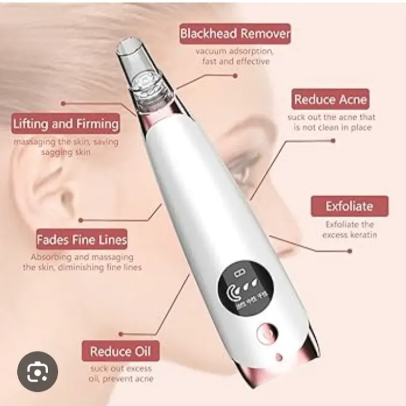 El kit incluye 6 cabezales especiales y un dispositivo de limpieza facial profunda con funciones de succión y eliminación de puntos negros y blancos.