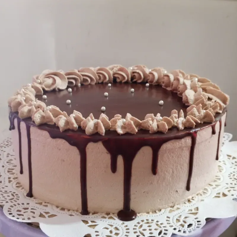 🔆Masa de chocolate,decorado y relleno con crema de chocolate y cubierta de chocolate.