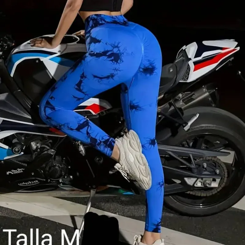 Licra larga levanta glúteos 🍑 Talla:M Color: azul y Negro marmolado