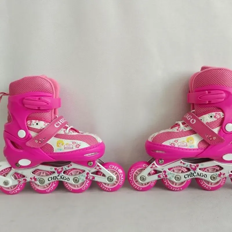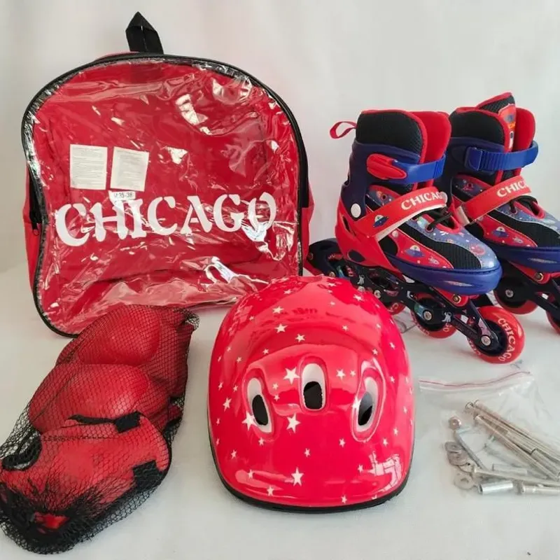 Juego de patines con accesorios Descripción: Son ajustables según la talla: S - 31-34 M - 35-38 L - 39-42 Colores disponibles: Rojo y rosado