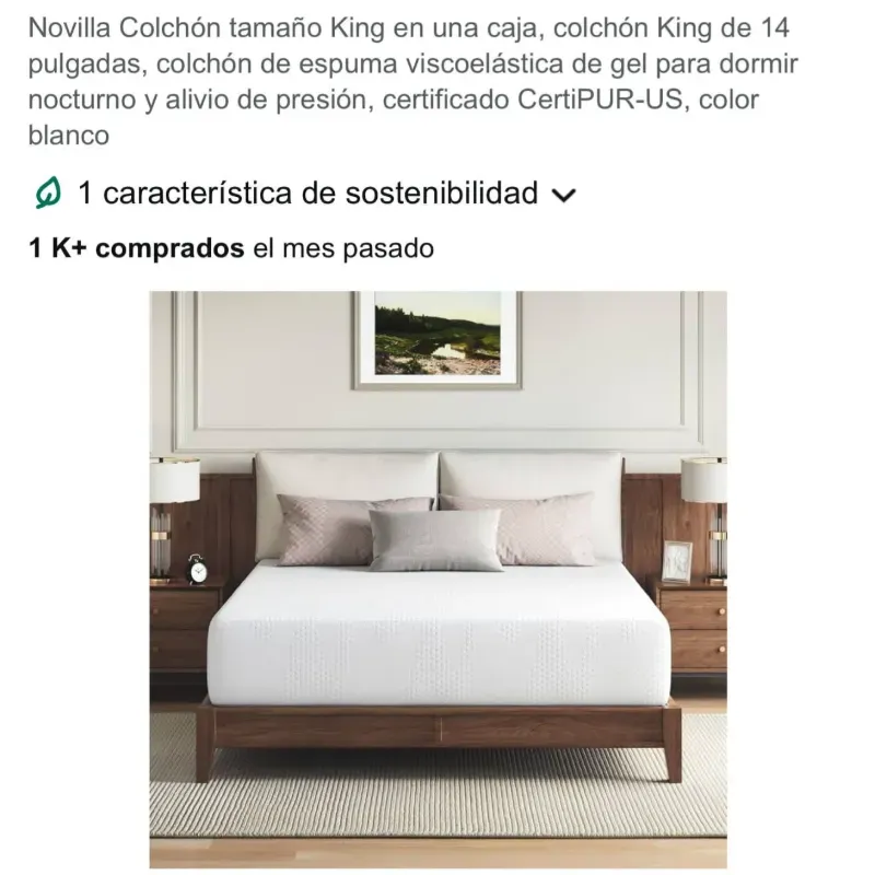 Sostenibilidad: Cuenta con la etiqueta de "1 característica de sostenibilidad" de Amazon, lo que indica un compromiso con procesos de fabricación más limpios.