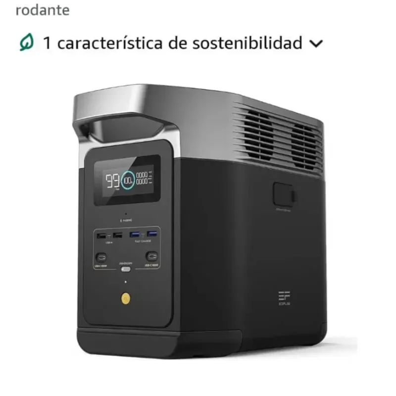 ECOFLOW DELTA 2 *(1024WH)* • Capacidad 1024Wh • Salida de 1800w / 2700w • Carga en 12v - 24v • Batería LiFePO₄ permite hasta 4000 ciclos antes de perder capacidad. • Protección IP65 contra agua y polvo. • Entrada de panel solar hasta 500w 12V - 60V / 15A • Puede controlar el equipo por el teléfono por la aplicación Ecoflow • EL PANEL SOLAR NO ESTÁ INCLUIDO