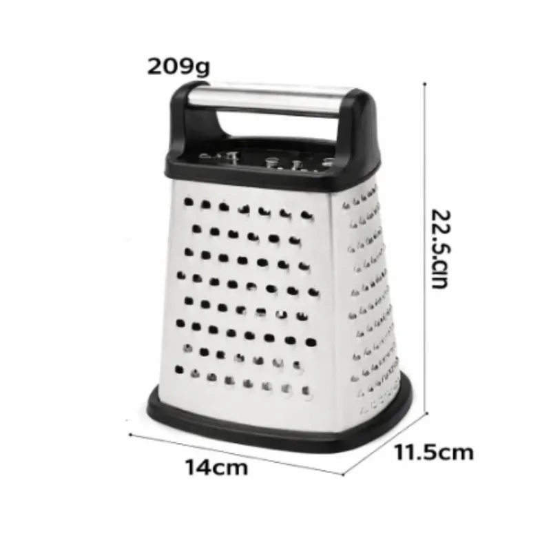 Este rallador multifuncional es una herramienta básica y muy práctica en la cocina. Gracias a sus 4 caras, permite preparar diferentes tipos de alimentos con distintos cortes en un solo utensilio.