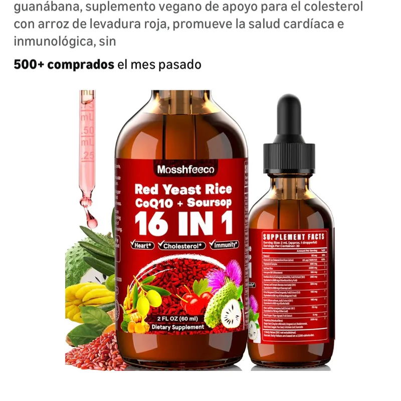 Arroz de levadura roja con CoQ10 y extracto de hoja de guanábana, suplemento vegano de apoyo para el colesterol con arroz de levadura roja, promueve la salud cardíaca e inmunológica