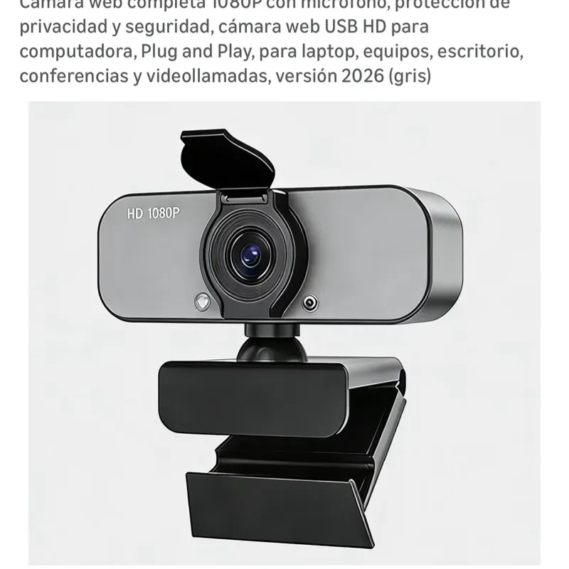 Cámara web completa 1080P con micrófono, protección de privacidad y seguridad, cámara web USB HD para computadora, Plug and Play, para laptop, equipos, escritorio, conferencias y videollamadas, versión 2026 (gris)