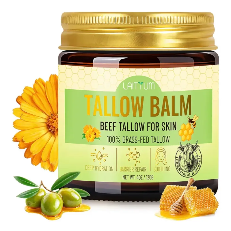 Sarga de ternera para la piel – Sarga orgánica de 4 onzas y bálsamo de miel para humectante facial, 100% crema de sarga de carne alimentada con hierba, bálsamo natural de sarga batida