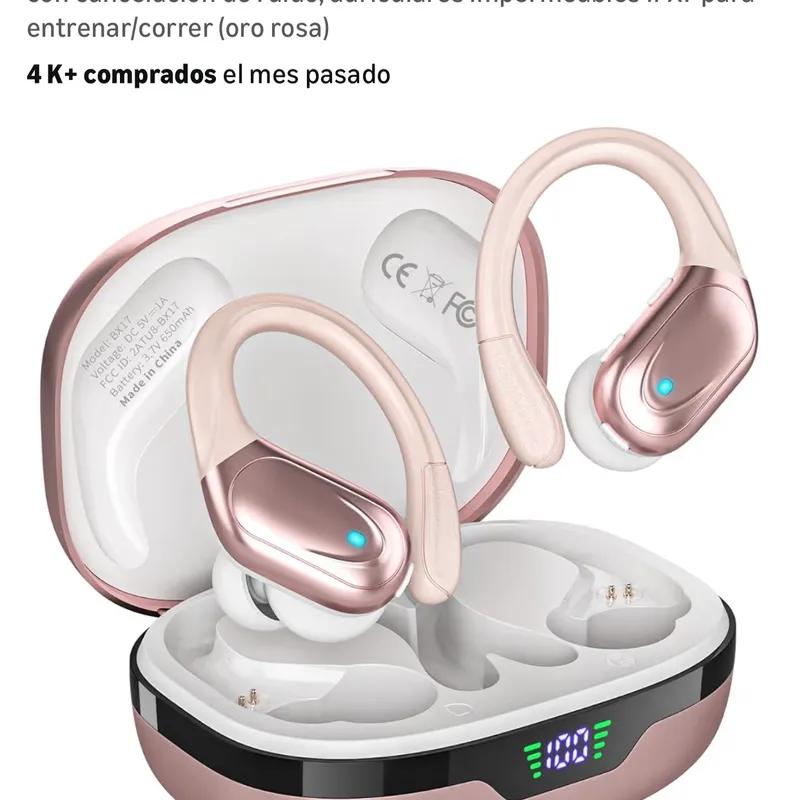 HAOYUYAN Auriculares inalámbricos, auriculares Bluetooth deportivos, auriculares deportivos con 80 horas de reproducción, con pantalla de alimentación LED, auriculares con cancelación de ruido, auriculares impermeables IPX7 para entrenar/correr (oro rosa)