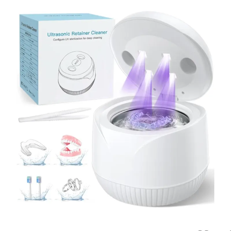 Máquina limpiadora de retenedores ultrasónicos dentales - Cápsula de limpieza dental para dentaduras, protector bucal, alineador, protector nocturno, frenos, cabezales de cepillo de dientes, joyas