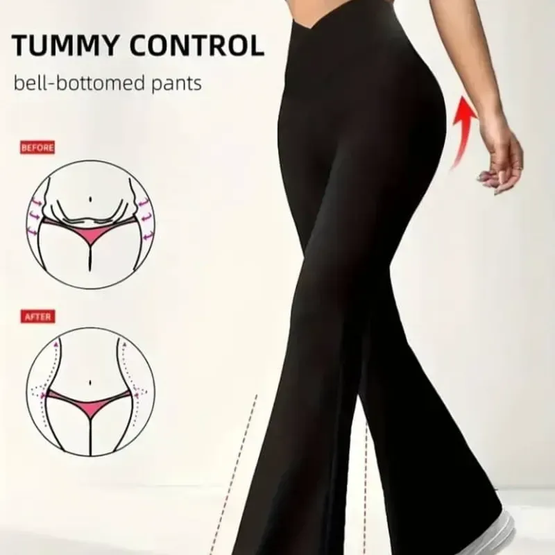 🛍Pantaloneta Negra Larga Acampanada de Cintura Alta- Elegante Pantalones Negros .Tejido Suave y Elástico, Uso para Todas las Estaciones en Eventos Casuales y Formales .