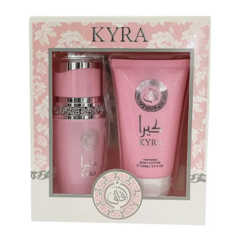 El paquete contiene un perfume árabe (Eau de Parfum) de 100 ml y una crema corporal (loción hidratante) de 150 ml.