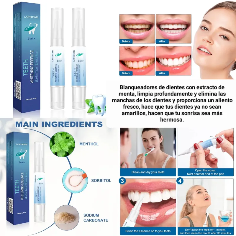 🛍️ Blanqueadores de dientes con extracto de menta, limpia profundamente y elimina las manchas de los dientes y proporciona un aliento fresco, hace que tus dientes ya no sean amarillos, hacen que tu sonrisa sea más hermosa.