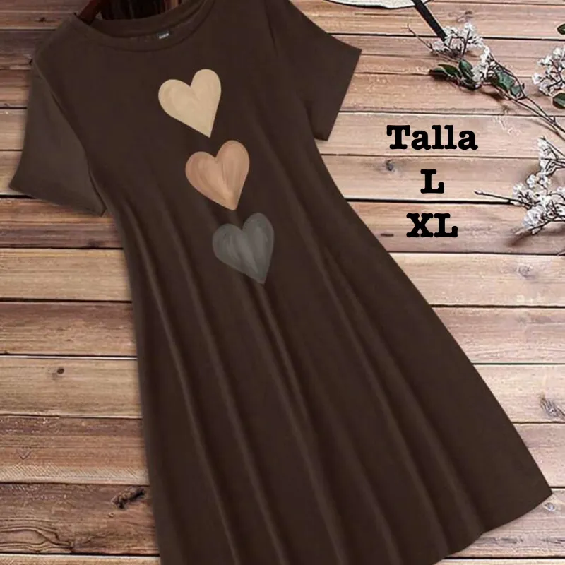 Vestido casual de verano para mujer con cuello redondo, manga corta y estampado de corazones