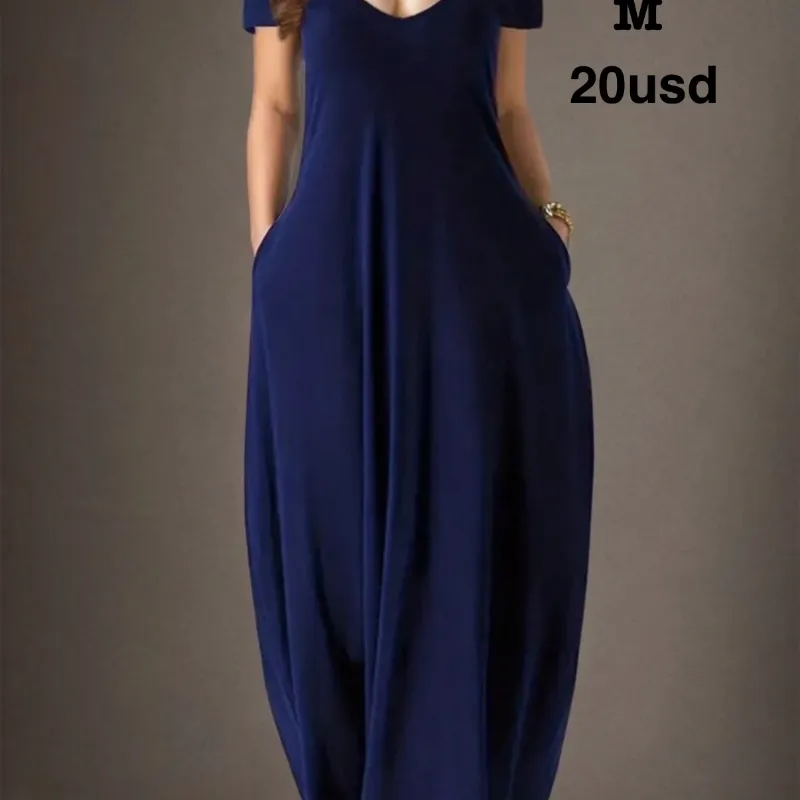Vestido de mujer de manga corta y cuello en V de unicolor con bolsillos, verano