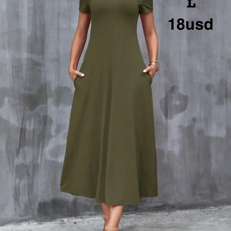 Vestido largo de mujer elastizado con bolsillos