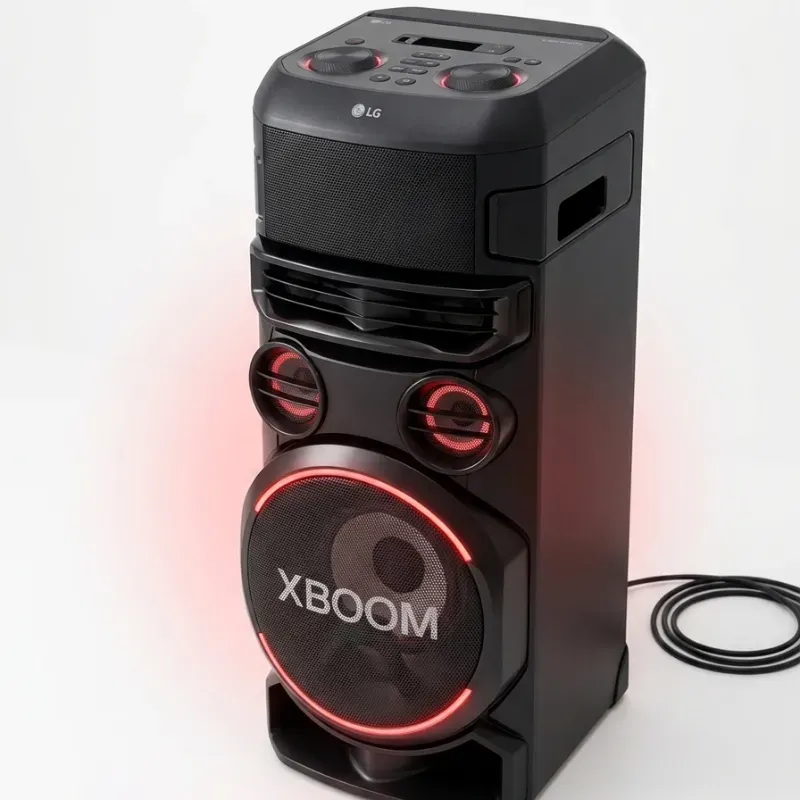 stas son las características principales de la serie LG XBOOM ON, que es el modelo de torre de sonido que aparece en tu imagen. Este equipo está diseñado especialmente para fiestas y eventos por su potencia y funciones interactivas: