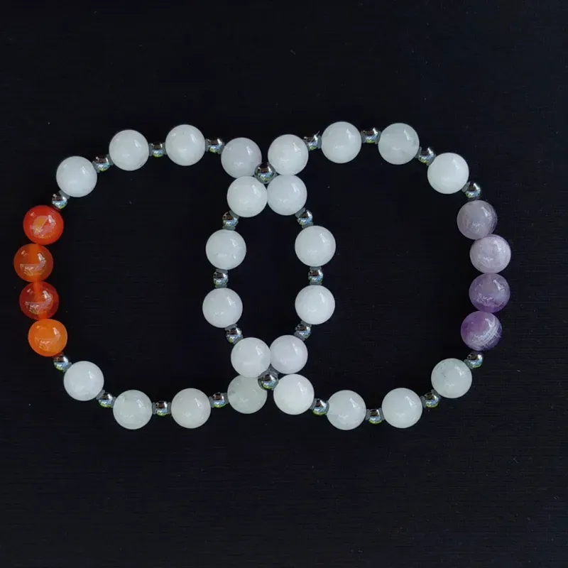 Pulsera de Cuarzo blanco, Amatista y Cornalina