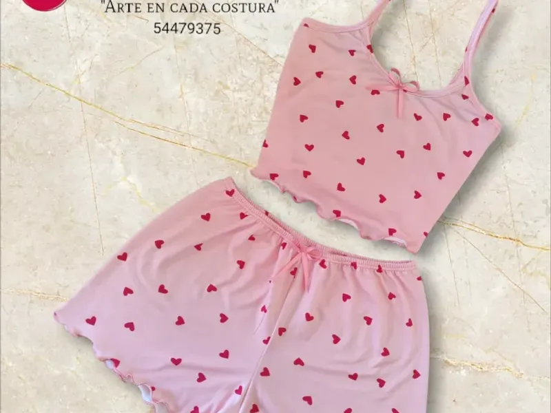 Pijama de 2 piezas corto Durazno corazones