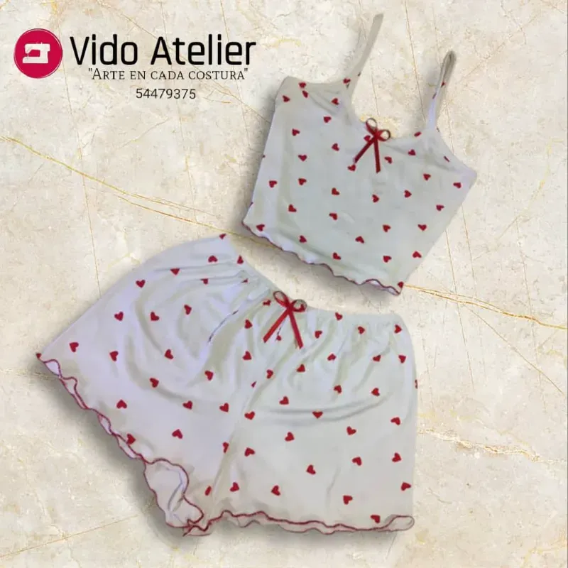 Pijama de 2 piezas corto Blanco corazones rojo