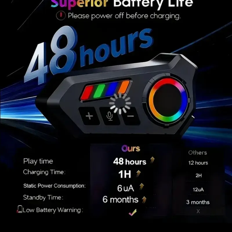 Auriculares para casco de moto - Batería de 48 horas, calidad de sonido HD, llamadas manos libres, altavoces estéreo anti-interferencia, carga tipo C, conexión inalámbrica - Funciona normalmente incluso en la lluvia, un elemento esencial para la conducción al aire libre.