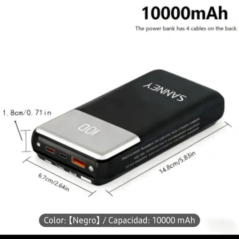 Banco de energía de 10000 mAh con cable incorporado y linterna LED, cargador portátil universal de múltiples salidas, batería recargable de polímero de litio, accesorio de viaje esencial