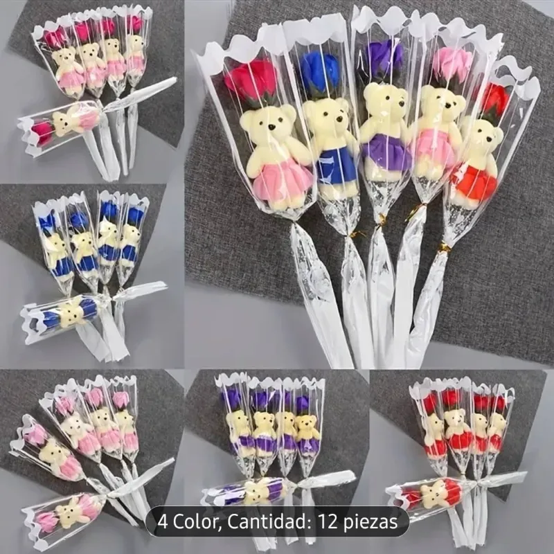 rosas artificiales acompañados de un oso suave: una selección ideal para el Día de San Valentín, bodas, cumpleaños y varios eventos - Rosas brillantes perfectas para la decoración del hogar y ocasiones especiales