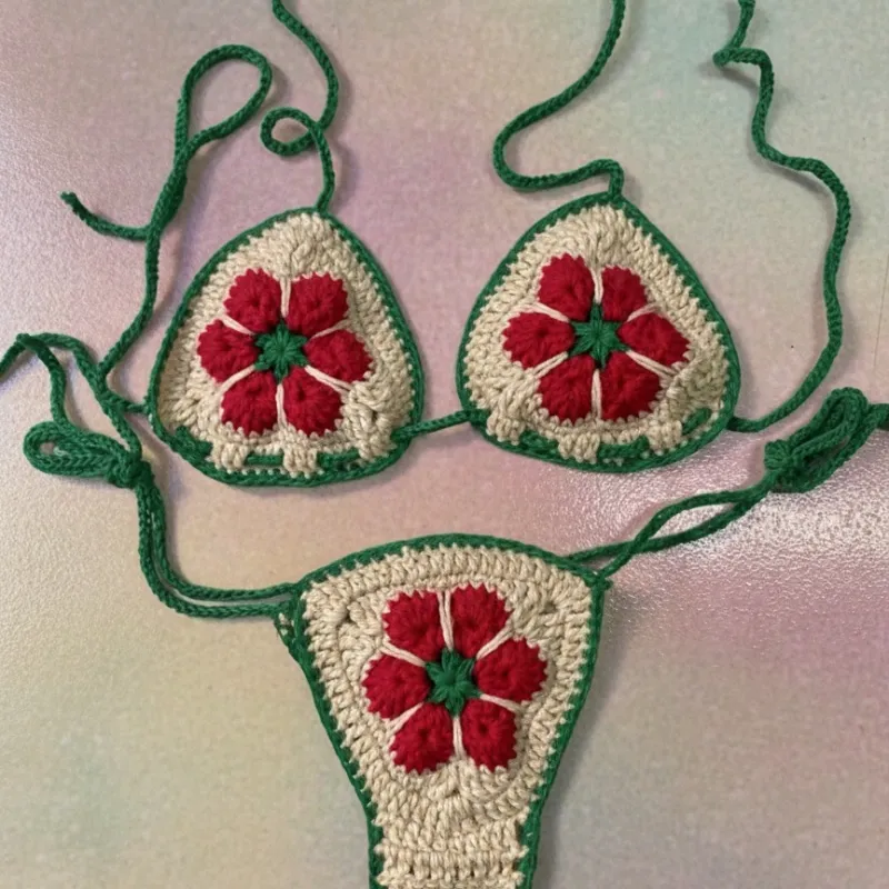 ¡Haz que tu estilo florezca! El Bikini Bloom combina la delicadeza del crochet con un diseño floral tridimensional único.