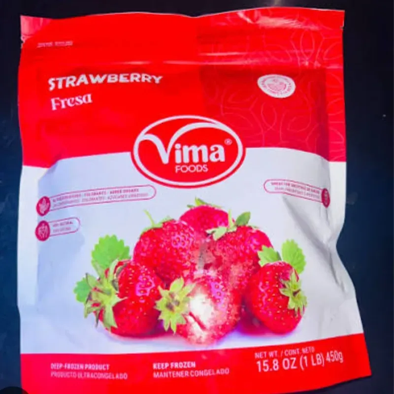 Los paquetes de fresa VIMA estan confeccionado con fresa 100% naturales frescas y jugosas ideales para meriendas,