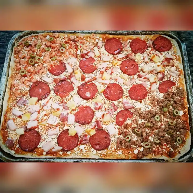 camaron atun tocineta lomo ahumado piña cebolla aceitunas y chorizo vela se funden con el queso creando un sabor único
