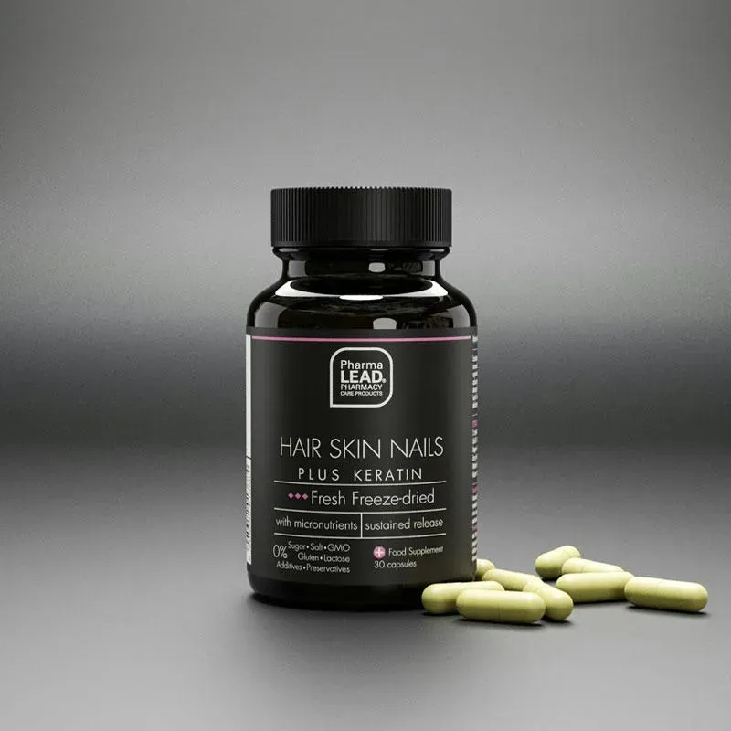 Nutrición del cabello, uñas, piel. Composición única con queratina, L-cisteína, vitaminas y minerales, ideal para la salud del cabello, las uñas y la piel. Ingredientes que contribuyen a: • el mantenimiento de un cabello y una piel normales (zinc, biotina*) • el mantenimiento de unas uñas normales (zinc*) • la pigmentación normal del cabello y la piel (cobre*) • el transporte normal de hierro en el cuerpo (cobre*) • el transporte normal de oxígeno en el cuerpo (hierro*) • el proceso de división celular (hierro, zinc*) Con queratina, un componente estructural clave del cabello, las uñas y la piel, L-cisteína, un aminoácido con propiedades antioxidantes y un componente clave de la queratina, así como hoja de ortiga y ginkgo biloba, hierbas con una rica actividad antiinflamatoria y antioxidante. Ingredientes Cantidad por porción: 2 cápsulas %VRN* Ácido pantoténico (como D-pantotenato de calcio, vitamina B5) 4 mg 66,6 % Vitamina B6 (como clorhidrato de piridoxina) 1 mg 71,4 % D-biotina 200 mcg 400 % Cobre (como gluconato de cobre) 2 mg 200 % Hierro (como bisglicinato ferroso) 6 mg 42,8 % Zinc (como picolinato de zinc) 6 mg 60 % L-cisteína 300 mg ** Queratina solubilizada 200 mg ** Metilsulfonilmetano (MSM) 100 mg ** Ortiga (Urtica dioica L.) polvo fresco liofilizado 30 mg ** Ginkgo biloba L., folium, polvo fresco liofilizado 20 mg ** PABA (ácido paraaminobenzoico) 20 mg ** Dosis: 1-2 cápsulas al día, preferiblemente después de las comidas. Envase: 30 cápsulas de liberación prolongada. Apto para: Diabéticos, homeopatía.