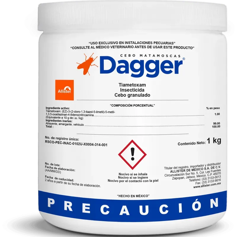 Dagger® es un cebo matamoscas listo para usarse en el exterior e interior de todo tipo de instalaciones en donde las moscas representan una molestia y un peligro para la salud.
