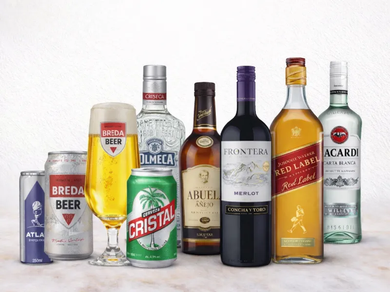Cervezas, Whiskys, Ron y Energizantes.