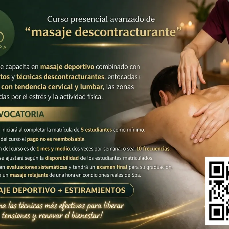 Este curso te capacita en masaje deportivo combinado con estiramientos y técnicas descontracturantes, enfocadas en espalda, con tendencia cervical y dorsal, las zonas más afectadas por el estrés y la actividad física.