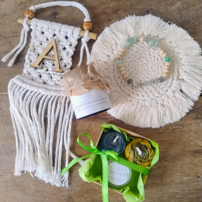 Mini tapiz+Bálsamo de vit E+ Pulsera +2 Velas de rositas + Bálsamo para los labios